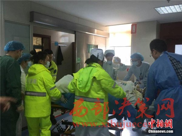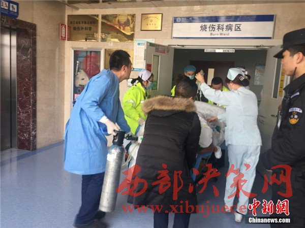 浙江大學(xué)醫(yī)學(xué)院附屬第二醫(yī)院醫(yī)護(hù)人員正將浙江天臺縣“2·5”火災(zāi)事故受傷人員送至燒傷科病區(qū)。