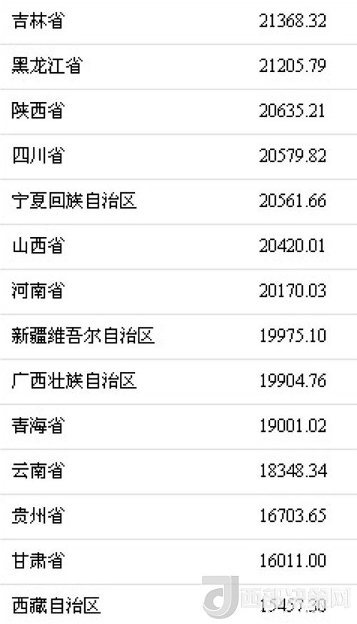2017年各地居民人均可支配收入。來源:國(guó)家統(tǒng)計(jì)局網(wǎng)站