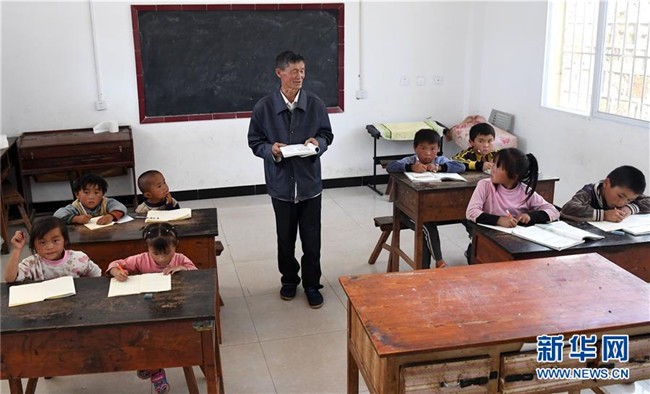 9月5日,云南省祿勸彝族苗族自治縣撒營盤鎮(zhèn)三蒙村阿依羊小學教師王正祥在給學生們上課。阿依羊小學位于海拔2600米的山間,交通不便,全校只有8名學生。而今年56歲的王正祥既是學校唯一的老師,也在生活上給了孩子們無微不至的關(guān)心。1980年,王正祥開始從教,在大山深處一干就是38年。他說:“村里就我一個老師,只要有一個學生,我都要教下去,不讓孩子輟學。希望他們像小鷹一樣飛出大山,能有更光明的未來。”新華社記者 藺以光 攝