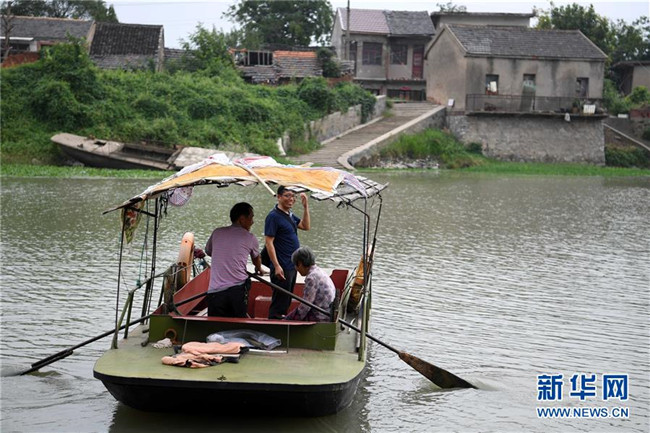 安徽含山縣運漕鎮(zhèn)楊謝小學河北教學點教師汪開寬(中)在放學后乘船到島對面的集市買菜(2017年9月5日攝)。河北教學點所在的河北自然村四面環(huán)河,島上人口不足100人。30年前,師范學校畢業(yè)的汪開寬來到這里,開始了自己的教師生涯。近年來,學生數(shù)量慢慢減少到個位數(shù),其他老師陸續(xù)離開,最后只剩下汪開寬一人。然而為了島上的孩子們不用涉險過河上學,汪開寬依舊選擇了堅守。新華社記者 劉軍喜 攝