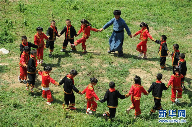 9月5日,貴州畢節(jié)市黔西縣花溪彝族苗族鄉(xiāng)豐坪小學教師楊朝俊和學生一起跳民族舞蹈。時至今日,楊朝俊在當?shù)亟虝延?4個年頭,曾孤身一人守著豐坪小學兩個年級的30余名學生,照顧他們的學習和生活。楊朝俊默默堅守的事跡,吸引了一名支教老師前來“搭班”。今年新學期開學時,當?shù)亟逃块T又選派了一名年輕的特崗教師來到學校,分擔教學工作。新華社發(fā)(楊文斌攝)