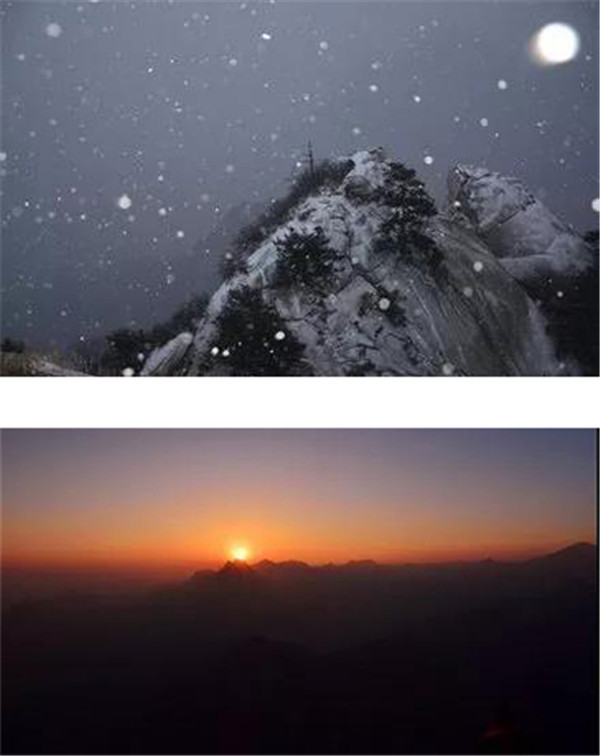 華山在11月進(jìn)入冬季,12月至次年3月全山飄雪,而2月前為最旺雪期。游客可欣賞到難得一見的華山雪景——美麗的霧凇給樹木、巖石、屋舍都披上一層晶瑩的薄衣,尤其在大雪覆蓋后,山景變成一幅曼妙的白色圖畫,峰上的樹木和古藤被透明的冰層包裹,極富魅力。