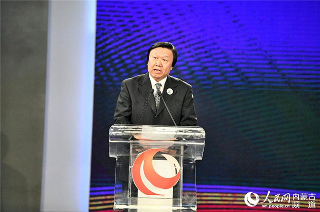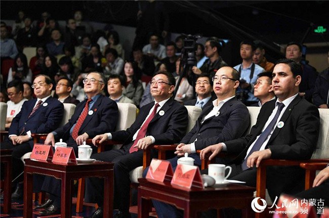 內(nèi)蒙古自治區(qū)黨委常委、宣傳部部長白玉剛(左三),人民網(wǎng)黨委書記、董事長、總裁葉蓁蓁(右二)等領(lǐng)導(dǎo)和嘉賓出席發(fā)布會。