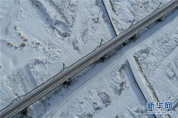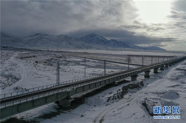 這是12月16日無人機(jī)拍攝的敦煌鐵路大柴旦站附近的一處鐵路橋。12月18日,隨著肅北至馬海區(qū)段通車,敦煌鐵路全線開通運(yùn)營,中國西北地區(qū)形成首條環(huán)形鐵路網(wǎng)。新華社記者張龍攝