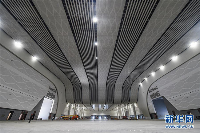 8月25日,工人在位于??诘暮D蠂H會展中心二期項目施工。新華社記者 蒲曉旭 攝