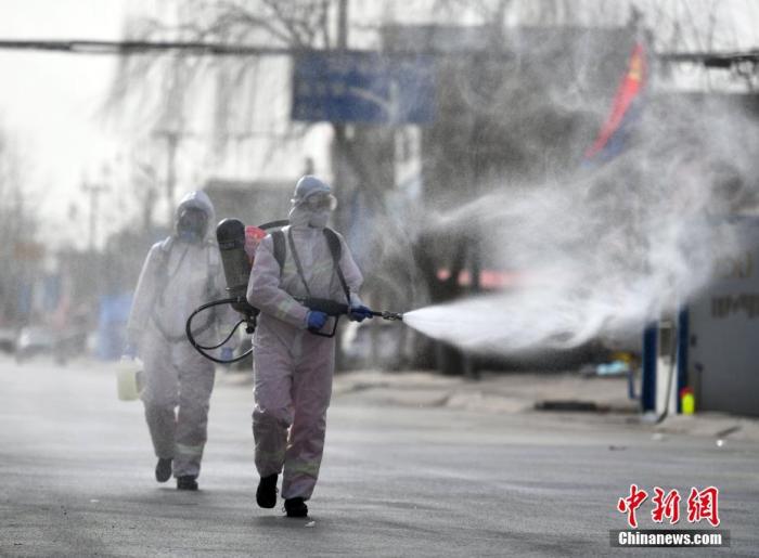 1月15日,石家莊消防救援支隊藁城大隊消防員在小果莊村村口路段消殺。當(dāng)日,河北省石家莊市藁城區(qū)開展防疫消殺工作。 中新社記者 翟羽佳 攝