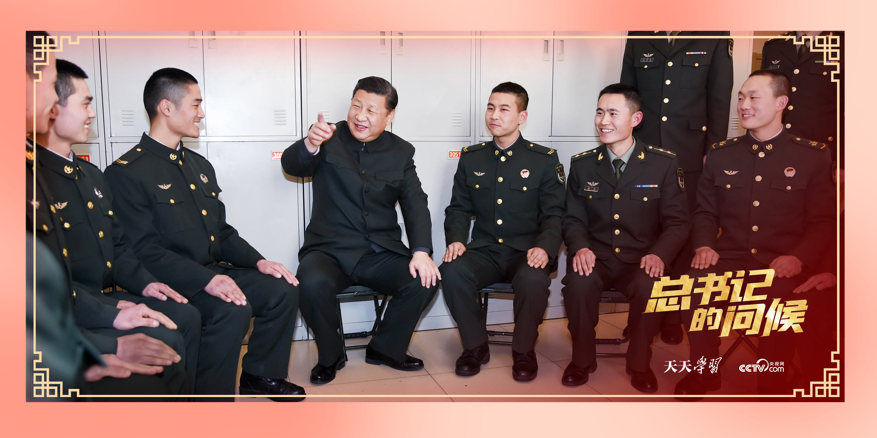 2017年1月,習(xí)近平主席視察駐張家口部隊,他走進戰(zhàn)士們的宿舍,摸摸被褥,看看衣物,關(guān)切地詢問戰(zhàn)士們能不能洗上熱水澡、晚上宿舍冷不冷、過節(jié)準(zhǔn)備得怎么樣。戰(zhàn)士們唱起《“四有”標(biāo)準(zhǔn)立起來》,習(xí)近平主席帶頭給戰(zhàn)士們鼓掌,與大家圍坐在一起親切交談。