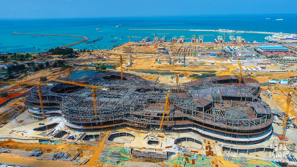 △2021年3月5日,建設(shè)中的??趪H免稅城項目,未來將成為??谛碌貥?biāo)。