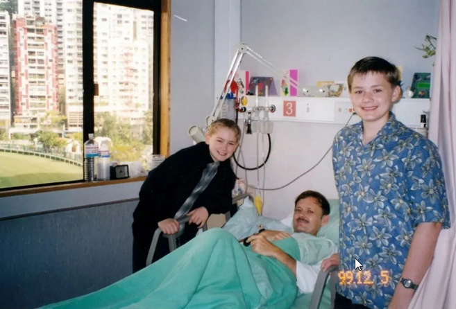 1999年潘維廉在香港一家醫(yī)院接受癌癥手術(shù),和家人在一起。(圖源:人民日?qǐng)?bào)客戶(hù)端)