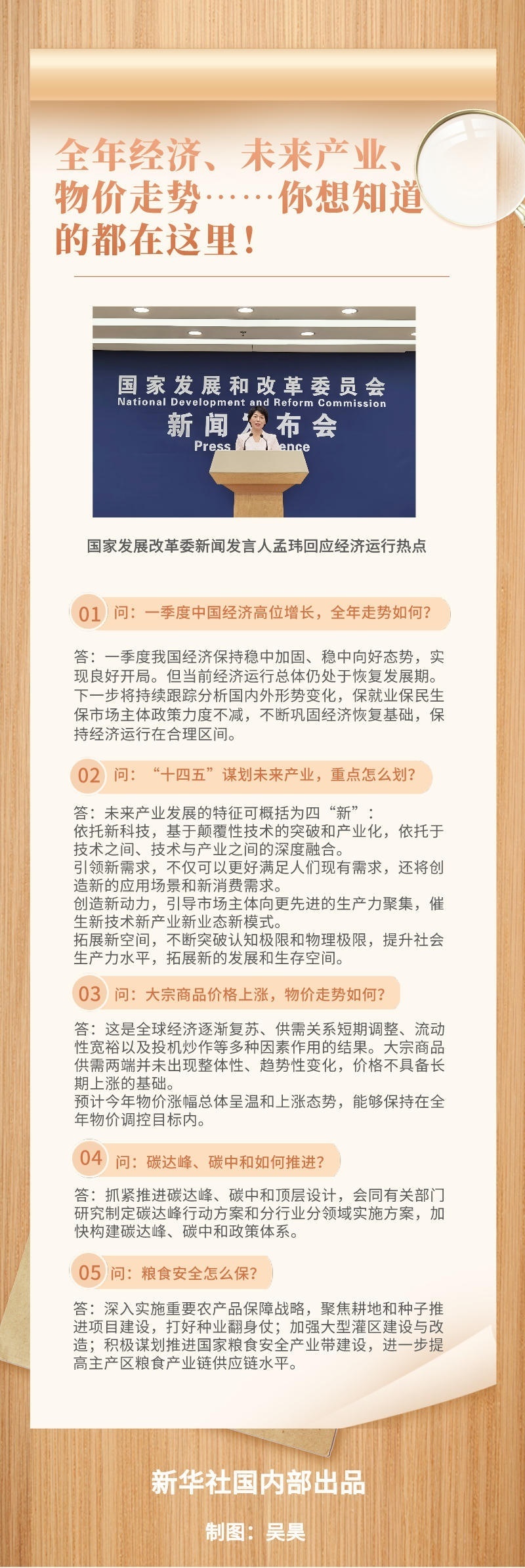 一季度中國(guó)經(jīng)濟(jì)高位增長(zhǎng),全年走勢(shì)如何?“十四五”謀劃未來(lái)產(chǎn)業(yè),重點(diǎn)怎么劃?大宗商品價(jià)格上漲,物價(jià)可控嗎?國(guó)家發(fā)展改革委新聞發(fā)言人孟瑋在19日舉行的新聞發(fā)布會(huì)上就熱點(diǎn)問(wèn)題作出回應(yīng)。