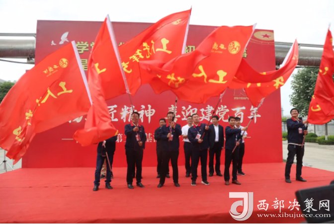 與會(huì)領(lǐng)導(dǎo)為各參賽單位授予“工人先鋒號(hào)”賽旗
