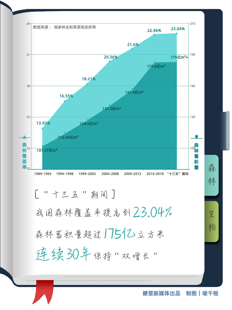 三北防護(hù)林、天然林保護(hù)、退耕還林還草等一系列重大生態(tài)工程深入推進(jìn)。“十三五”期間,我國森林覆蓋率提高到23.04%,森林蓄積量超過175億立方米,連續(xù)30年保持“雙增長”,成為森林資源增長最多的國家。