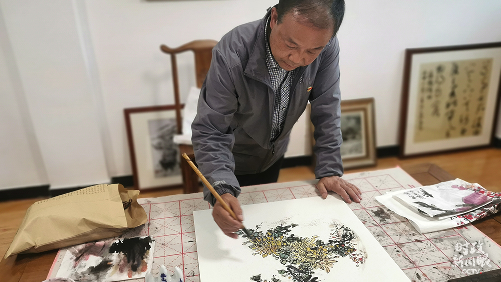 △55歲的魏真盈是社區(qū)書(shū)畫(huà)室的國(guó)畫(huà)指導(dǎo)老師。(總臺(tái)央視記者覃思、馬超拍攝)