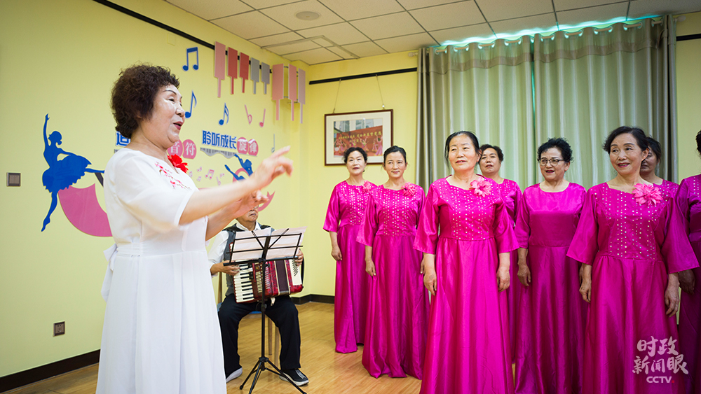 △社區(qū)合唱團(tuán)正在排練,總指揮是66歲的社區(qū)居民王紅梅。(總臺(tái)央視記者彭漢明拍攝)