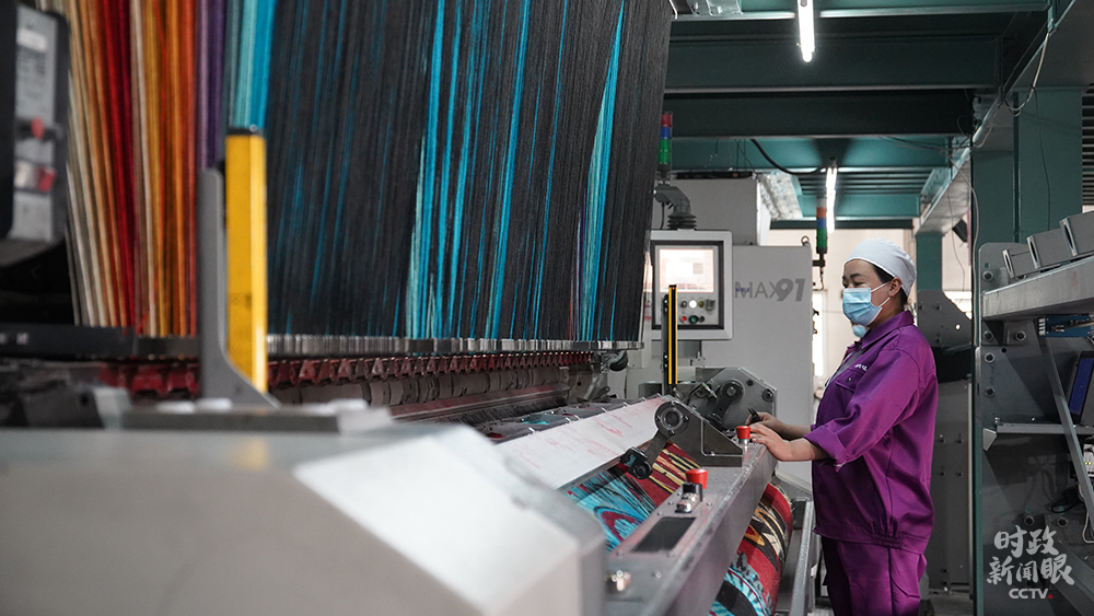 △阿克明斯特織機(jī)運(yùn)行中(總臺(tái)央廣記者潘毅拍攝)