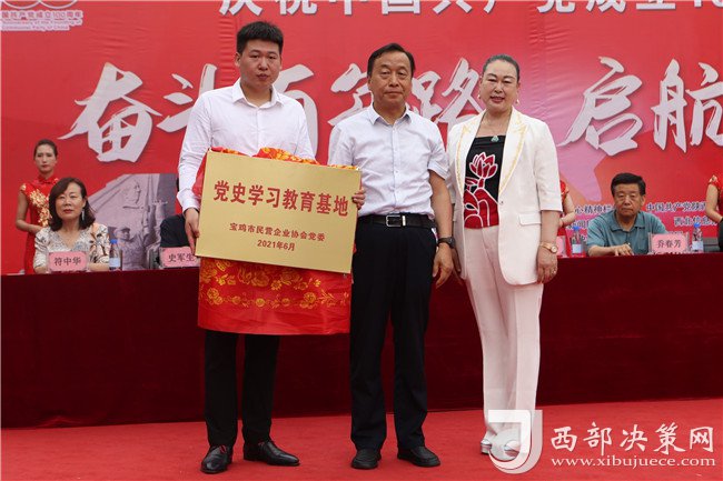 西部決策網(wǎng)訊(記者李乃斌)2021年6月23日,由中央廣播電視總臺——中央新影發(fā)現(xiàn)之旅頻道匠心精神欄目組、中國共產(chǎn)黨陜西京泰集團總支部委員會主辦,陜西省紡織行業(yè)協(xié)會、寶雞市民營企業(yè)協(xié)會、寶雞市女企業(yè)家協(xié)會、寶雞市老年科技工作者協(xié)會協(xié)辦的“奮斗百年路 啟航新征程”慶祝中國共產(chǎn)黨成立100周年大會暨黨史館授牌儀式,在陜西五丈原京泰黨史館廣場舉行。
