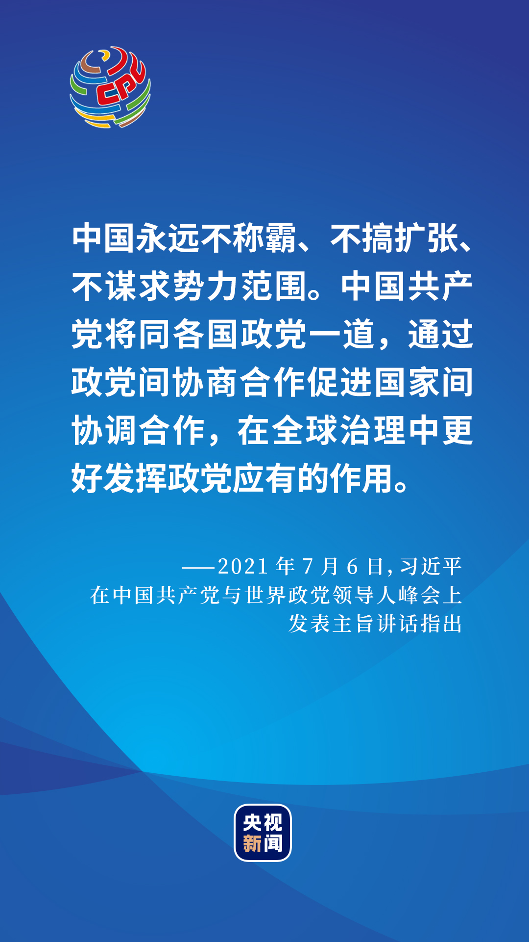 2021年7月6日,在中國共產(chǎn)黨與世界政黨領(lǐng)導(dǎo)人峰會上,習(xí)近平總書記給出了一個百年大黨的選擇和主張。