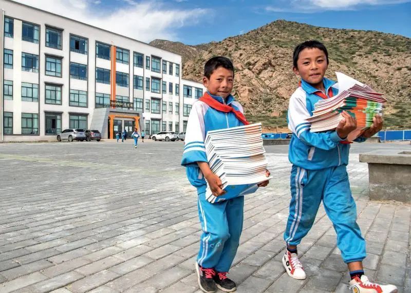 ▲西藏山南市貢嘎縣森布日幸福家園九年一貫制學(xué)校的學(xué)生們?cè)诎嵝聲?2020年8月24日攝) 孫非攝 / 本刊