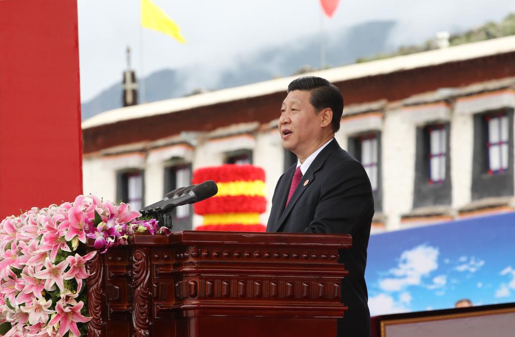 2011年7月19日,西藏和平解放60周年慶祝大會在拉薩舉行。習(xí)近平在慶祝大會上講話。新華社記者 丁林 攝