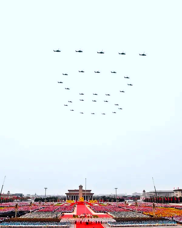 這天清晨,15架殲-20戰(zhàn)機(jī)分3個(gè)梯隊(duì),呼嘯飛過天安門。29架新型武裝直升機(jī)組成的“100”字樣,引起人們忘情的歡呼、無限的暢想。