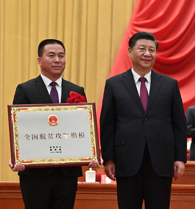2月25日,全國脫貧攻堅總結(jié)表彰大會在北京人民大會堂隆重舉行。這是習(xí)近平為全國脫貧攻堅楷模榮譽(yù)稱號獲得者寧夏回族自治區(qū)永寧縣閩寧鎮(zhèn)頒獎 李學(xué)仁攝/本刊