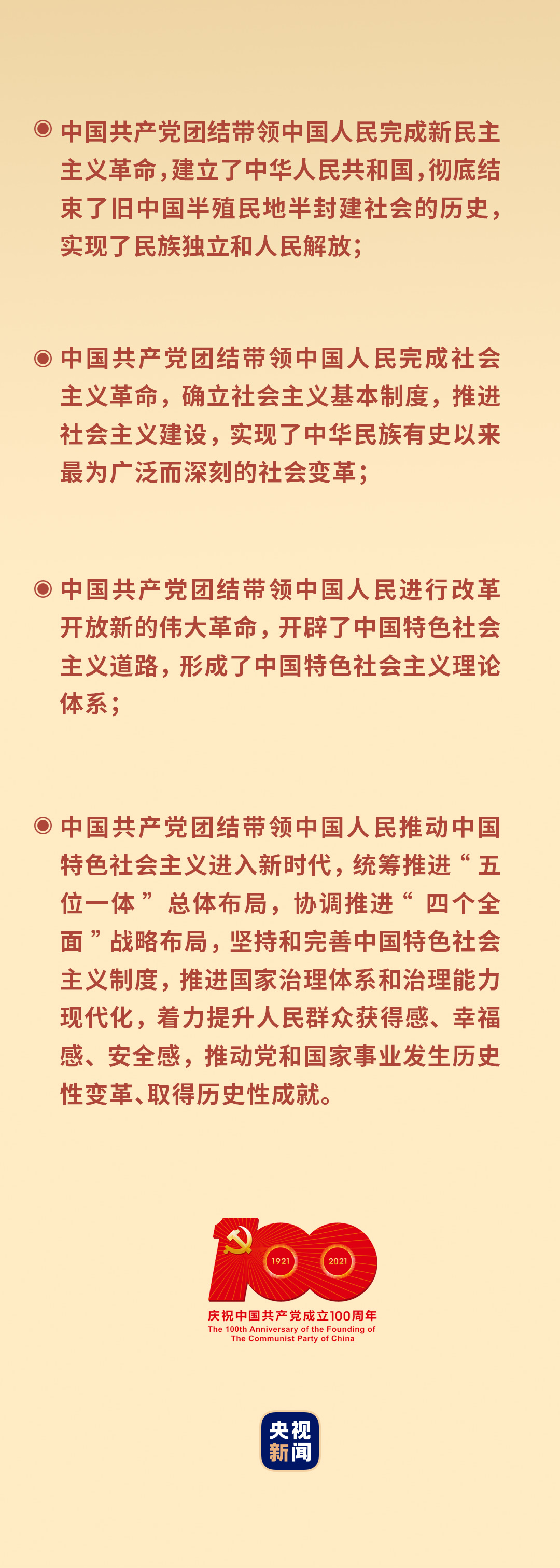 一百年來(lái),中國(guó)共產(chǎn)黨團(tuán)結(jié)海內(nèi)外全體中華兒女,克服一個(gè)又一個(gè)困難,戰(zhàn)勝一場(chǎng)又一場(chǎng)挑戰(zhàn),在中華民族發(fā)展史和人類社會(huì)進(jìn)步史上書(shū)寫(xiě)了壯麗篇章——