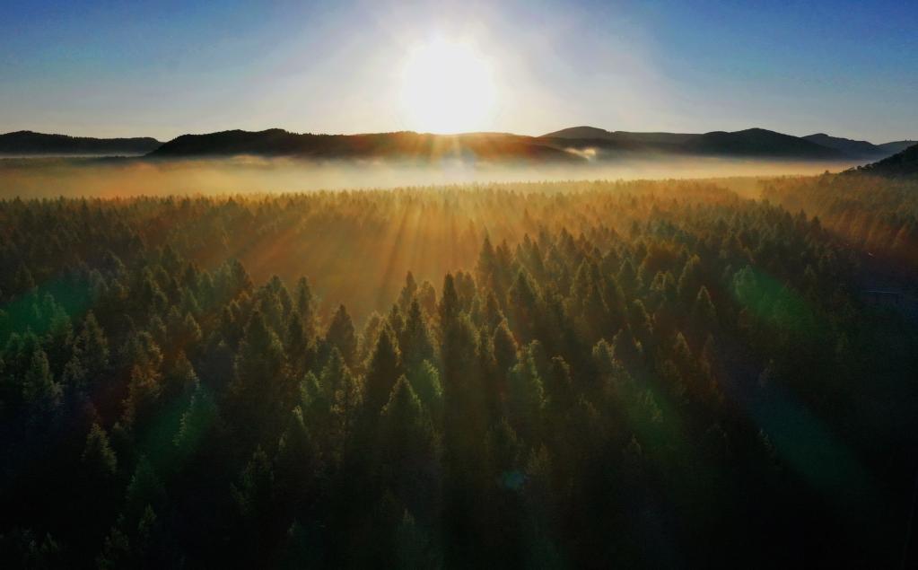 2021年6月27日拍攝的塞罕壩國家森林公園晨景(無人機照片)。新華社記者 楊世堯 攝