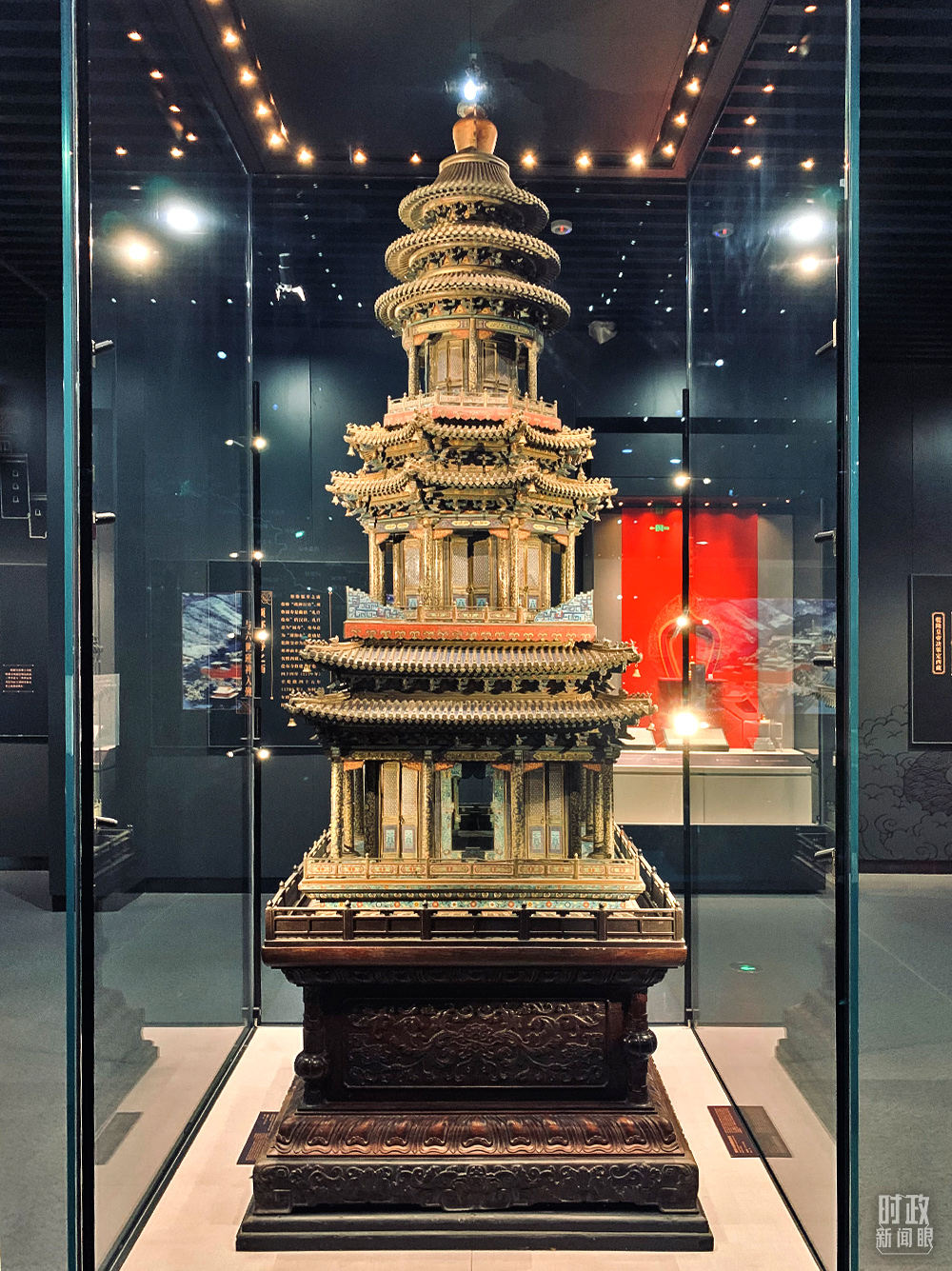 △承德博物館鎮(zhèn)館文物——清紫檀木座銅胎琺瑯?biāo)ǜ?05厘米。乾隆皇帝為迎接六世班禪來(lái)承德朝覲,下諭旨興建須彌福壽之廟,并將這一文物移來(lái)此處。(總臺(tái)央視記者范一鳴拍攝)