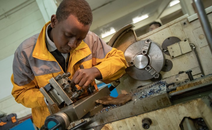 這是2018年8月17日在肯尼亞內(nèi)羅畢,一名學(xué)生維護(hù)機(jī)床。近年來,為了幫助非洲國家培養(yǎng)職業(yè)技術(shù)人才,助力非洲工業(yè)化進(jìn)程,中航國際分別與肯尼亞、烏干達(dá)、贊比亞、加納、加蓬等國教育部合作開展職業(yè)教育項目。新華社記者 張宇 攝