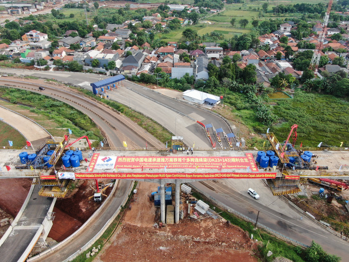 這是2020年5月10日拍攝的印度尼西亞雅萬高鐵首個多跨連續(xù)梁合龍現(xiàn)場。雅萬高鐵項目是中國高鐵全系統(tǒng)、全要素、全生產(chǎn)鏈走出國門的“第一單”,也是“一帶一路”倡議的標(biāo)志性工程和印尼國家戰(zhàn)略項目。 新華社記者 杜宇 攝