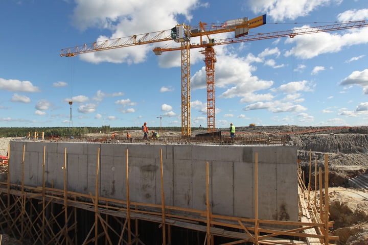 在俄羅斯西北部卡累利阿共和國凱姆河畔,工人在別洛巴羅什水電站施工現(xiàn)場工作(2017年8月15日攝)。別洛巴羅什水電站項目是俄羅斯首個由金磚國家新開發(fā)銀行提供融資支持的項目。新華社記者 魯金博 攝