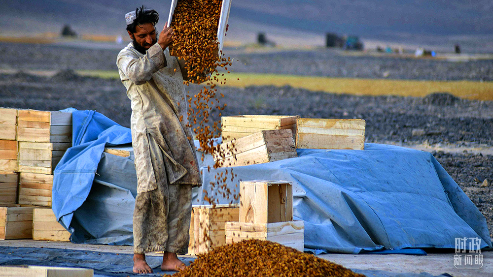 △2021年9月6日,阿富汗坎大哈,當地農民正在制作葡萄干。(圖/視覺中國)