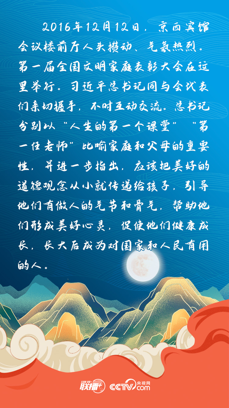 家是最小國(guó),國(guó)是千萬(wàn)家。黨的十八大以來(lái),習(xí)近平總書記多次強(qiáng)調(diào)要重視家庭建設(shè),提倡把愛家和愛國(guó)統(tǒng)一起來(lái),把實(shí)現(xiàn)個(gè)人夢(mèng)、家庭夢(mèng)融入國(guó)家夢(mèng)、民族夢(mèng)之中。中秋佳節(jié)即將到來(lái)之際,央視網(wǎng)《聯(lián)播+》欄目為您擷取總書記闡釋家國(guó)情懷的小故事,與您一起感受總書記心中的家國(guó)情。