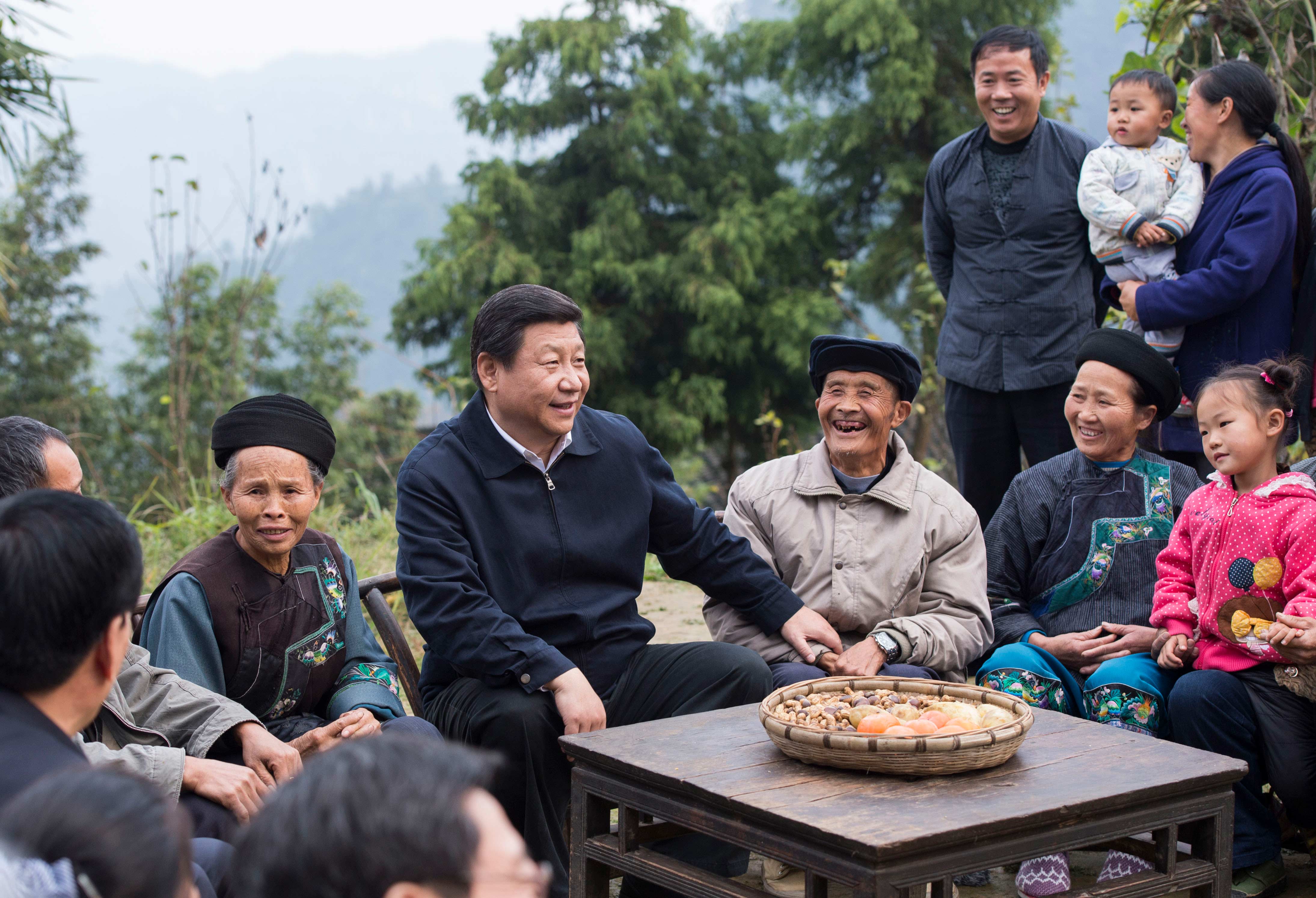2013年11月3日,習(xí)近平總書記在湘西土家族苗族自治州花垣縣排碧鄉(xiāng)十八洞村同村干部和村民座談。