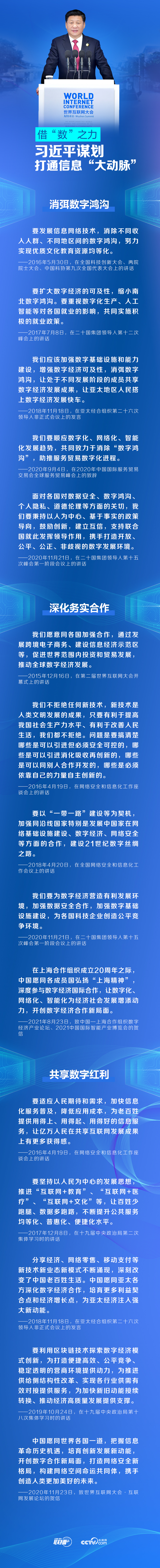 9月26日至28日,以“邁向數(shù)字文明新時(shí)代——攜手構(gòu)建網(wǎng)絡(luò)空間命運(yùn)共同體”為主題的2021年世界互聯(lián)網(wǎng)大會(huì)烏鎮(zhèn)峰會(huì)將在浙江烏鎮(zhèn)召開(kāi)。央視網(wǎng)《聯(lián)播+》特梳理總書(shū)記關(guān)于數(shù)字化發(fā)展的重要論述,與您一起學(xué)習(xí)領(lǐng)悟。