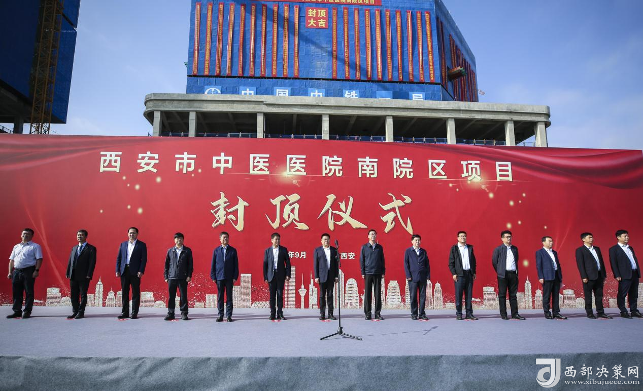 來自西安市政府,陜西省中醫(yī)藥管理局,市相關部門、長安區(qū)委區(qū)政府有關負責同志,以及市中醫(yī)醫(yī)院、中鐵一局建安公司等建設、施工單位人員100余人參加了封頂儀式。