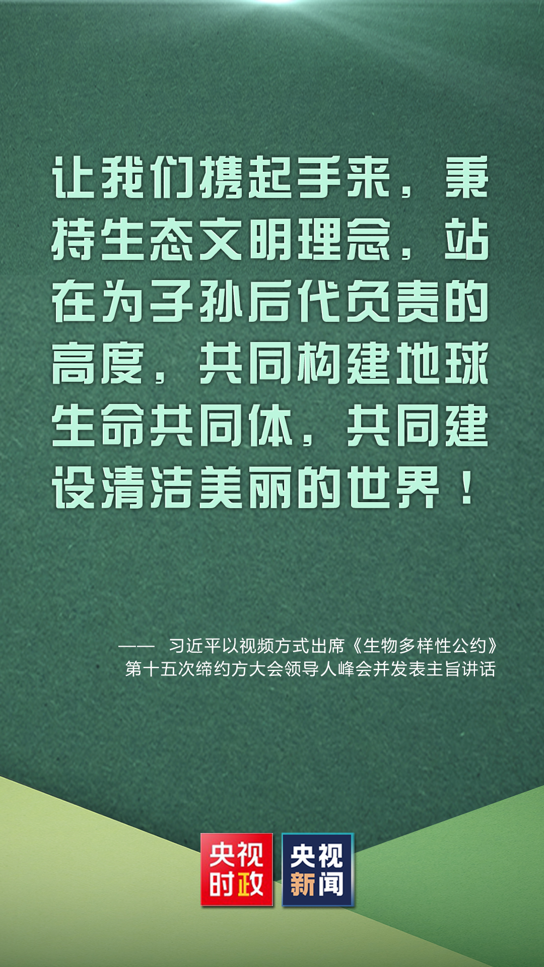 國家主席習近平12日下午以視頻方式出席在昆明舉行的《生物多樣性公約》第十五次締約方大會領導人峰會并發(fā)表主旨講話。