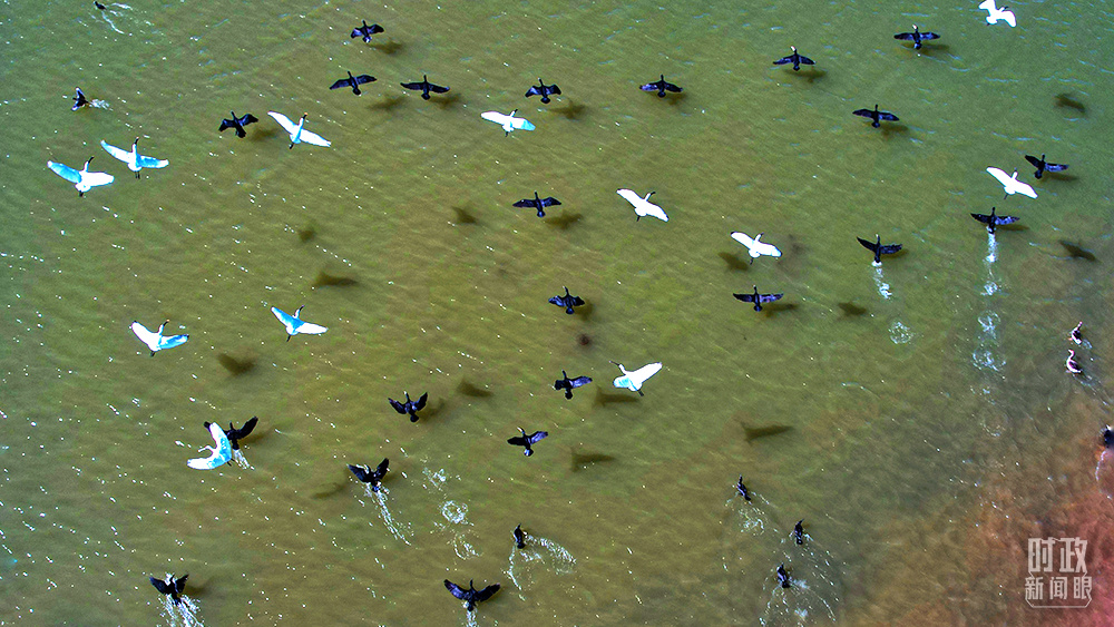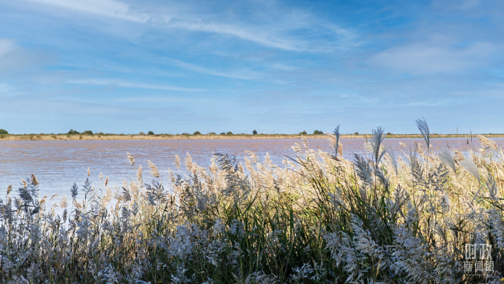 △當天的黃河三角洲上,蘆花飄搖、候鳥成群。(總臺央視記者彭漢明、國廣記者李晉拍攝)