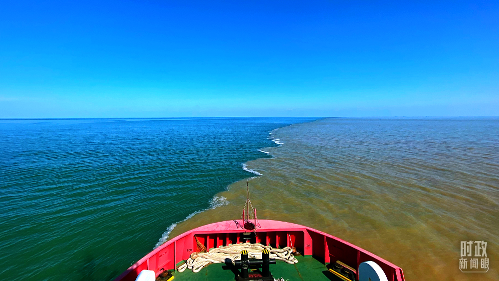 △用于海洋救援的拖輪駛入“河海交匯”之處。(總臺央視記者張宇拍攝)