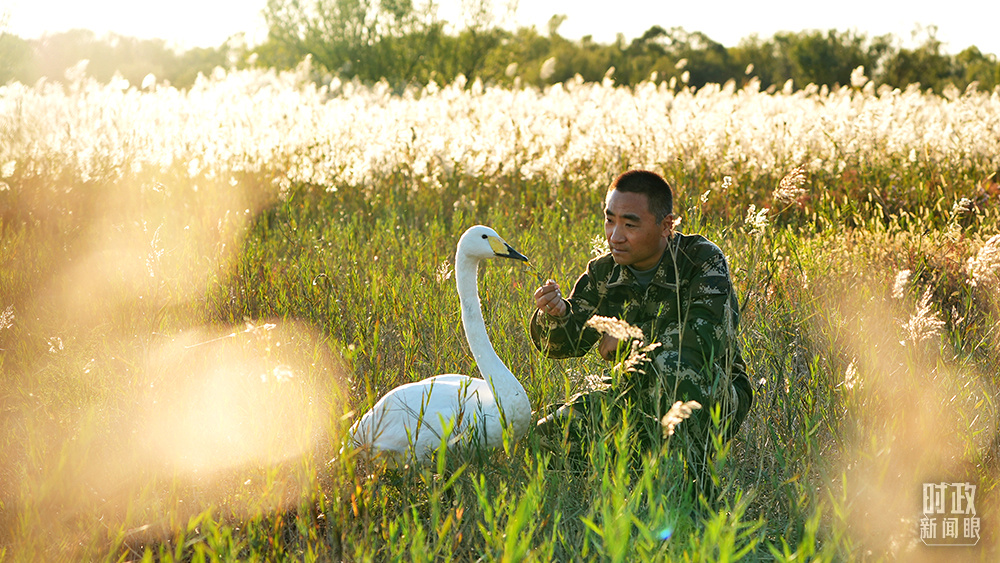 △李建是黃河三角洲國家級自然保護區(qū)的鳥類馴養(yǎng)師。(總臺央視記者程鋮拍攝)