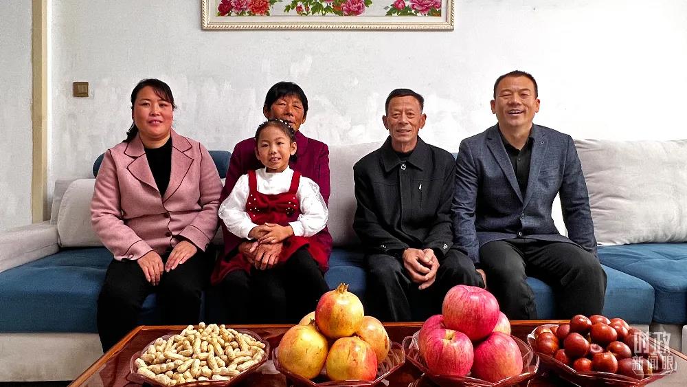△這是21日當天,許福華(右二)老人一家拍攝的全家福。(總臺央視記者邢彬拍攝)