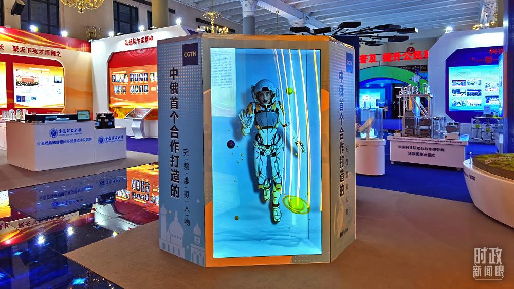 △這是通過三維全息裝置展示的中俄合作打造的完整虛擬人物“娜娜”。(總臺央視記者郭鴻拍攝)