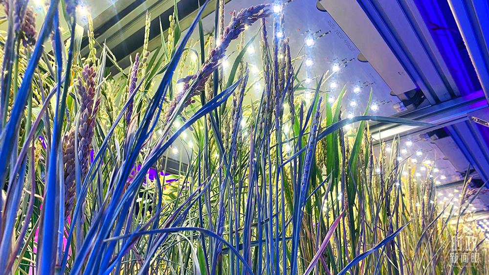 △無人植物工廠水稻育種加速器,采用多層立體栽培精準(zhǔn)調(diào)控方式,破解了水稻生育期由120天減半至60天的技術(shù)難題。目前畝產(chǎn)600多公斤。(總臺央視記者范一鳴拍攝)