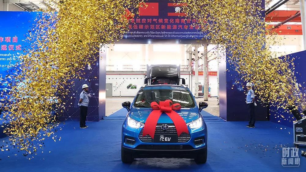 △2021年7月,中國老撾南南合作項(xiàng)目——萬象賽色塔低碳示范區(qū)新能源車發(fā)運(yùn)儀式在長沙舉行。28輛新能源汽車將助力當(dāng)?shù)匕l(fā)展綠色交通。(圖/視覺中國)
