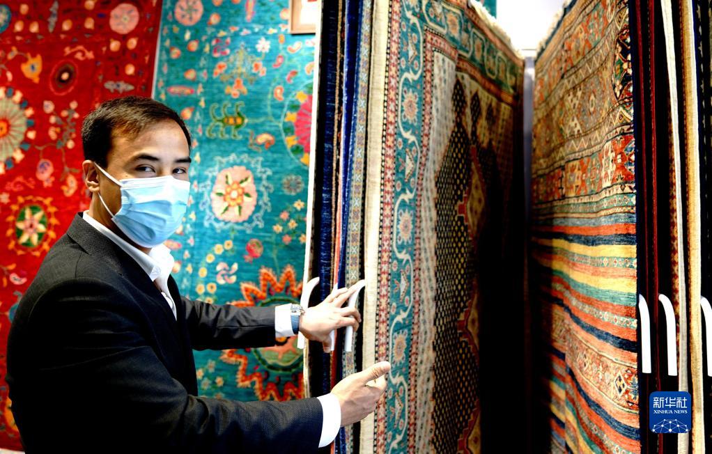 20多平方米的小展臺,沒有復(fù)雜的數(shù)字光影技術(shù),只有一臺筆記本電腦循環(huán)播放產(chǎn)品介紹。來自阿富汗的地毯商阿里說,只要賣出一張大幅的手工羊毛地毯,就能保障這個飽經(jīng)戰(zhàn)亂的國家一個普通家庭近一年的生活。