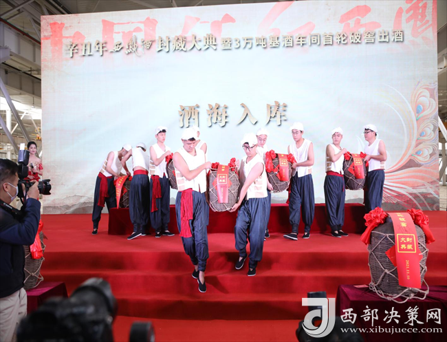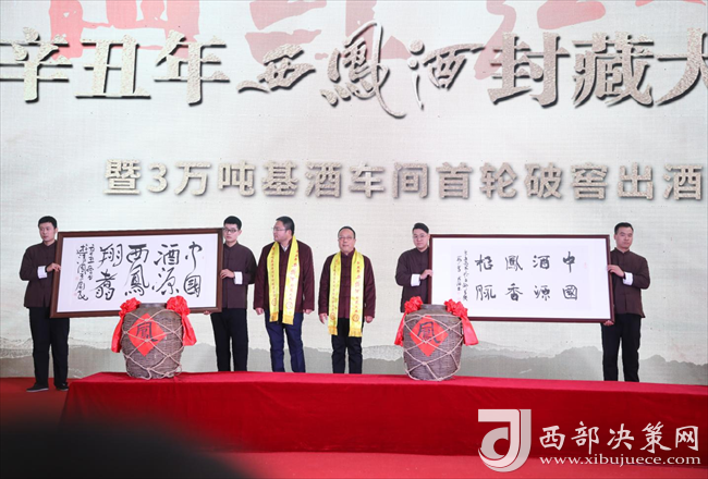 與會領導、優(yōu)秀職工代表共同上臺封藏西鳳新酒,傳承西鳳酒3000年匠藝,慶祝西鳳擴能的輝煌時刻。