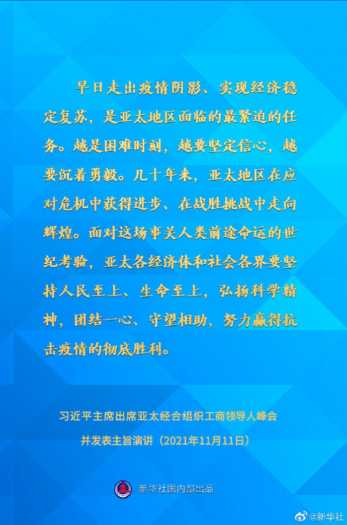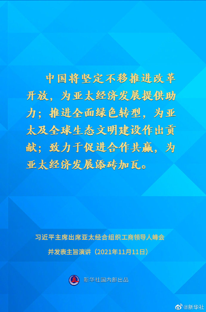 11月11日,國家主席習(xí)近平應(yīng)邀在北京以視頻方式向亞太經(jīng)合組織工商領(lǐng)導(dǎo)人峰會發(fā)表主旨演講。一起來看要點(diǎn)↓