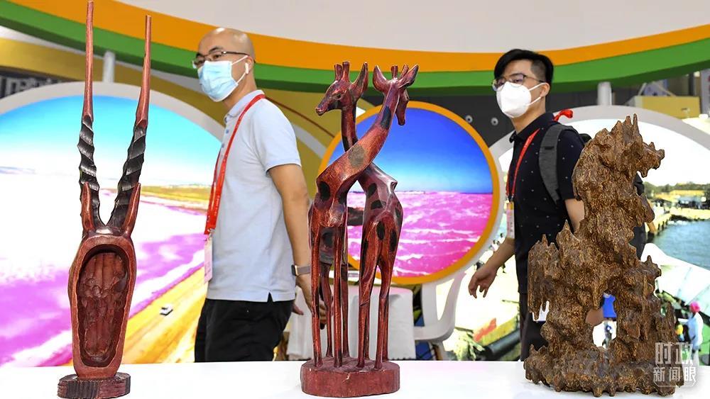 △2021年9月,湖南長(zhǎng)沙,第二屆中非經(jīng)貿(mào)博覽會(huì)上展出的塞內(nèi)加爾工藝品。(圖/視覺(jué)中國(guó))