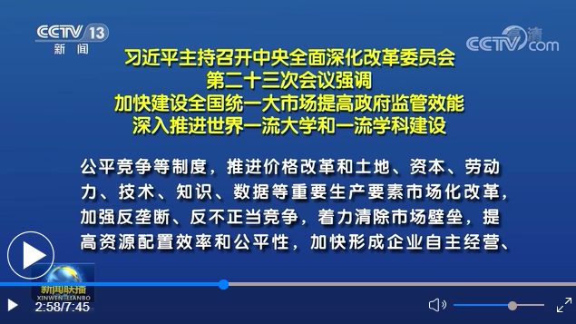 習(xí)近平主持召開(kāi)中央全面深化改革委員會(huì)第二十三次會(huì)議強(qiáng)調(diào)