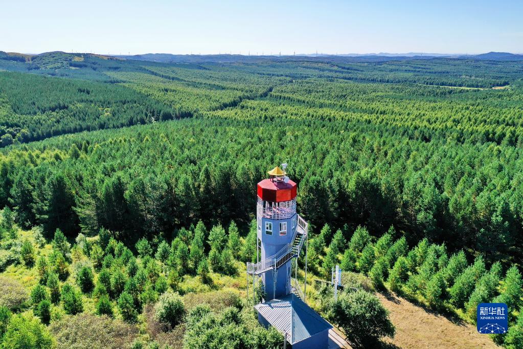 河北塞罕壩機械林場內(nèi)的望海樓(2021年8月23日攝,無人機照片)。新華社記者 牟宇 攝